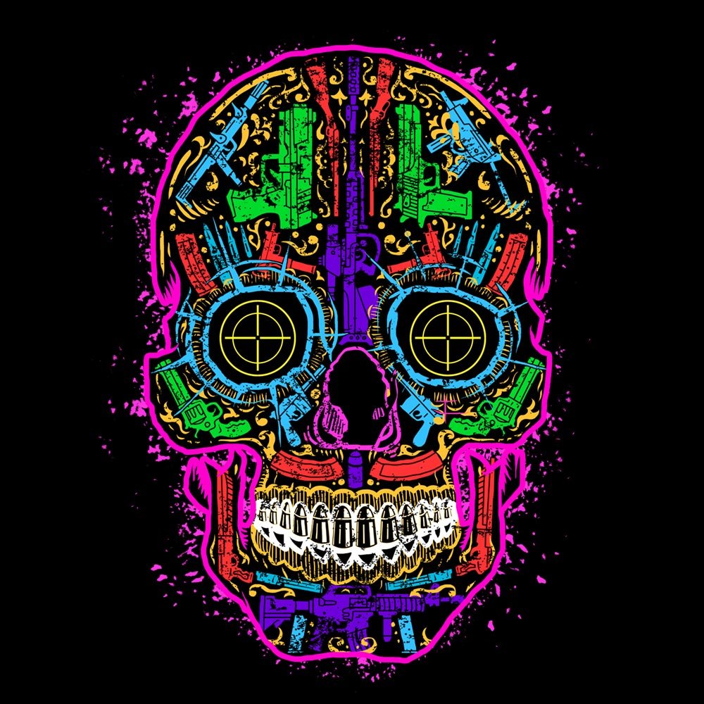 Happy Cinco de Mayo! Check out this tactical sugar skull made up entirely from silhouettes of rifles, pistols, bullets, and more. Would you prefer tacos instead? ¡Vamonos!