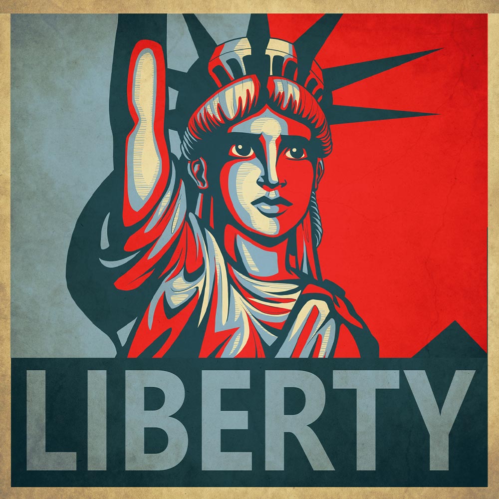 Our Lady of New Your herself, the Statue of Liberty! In honor of the election month, we celebrate the USA with this presidential candidate propaganda inspired design, "For Liberty and Justice for All!"