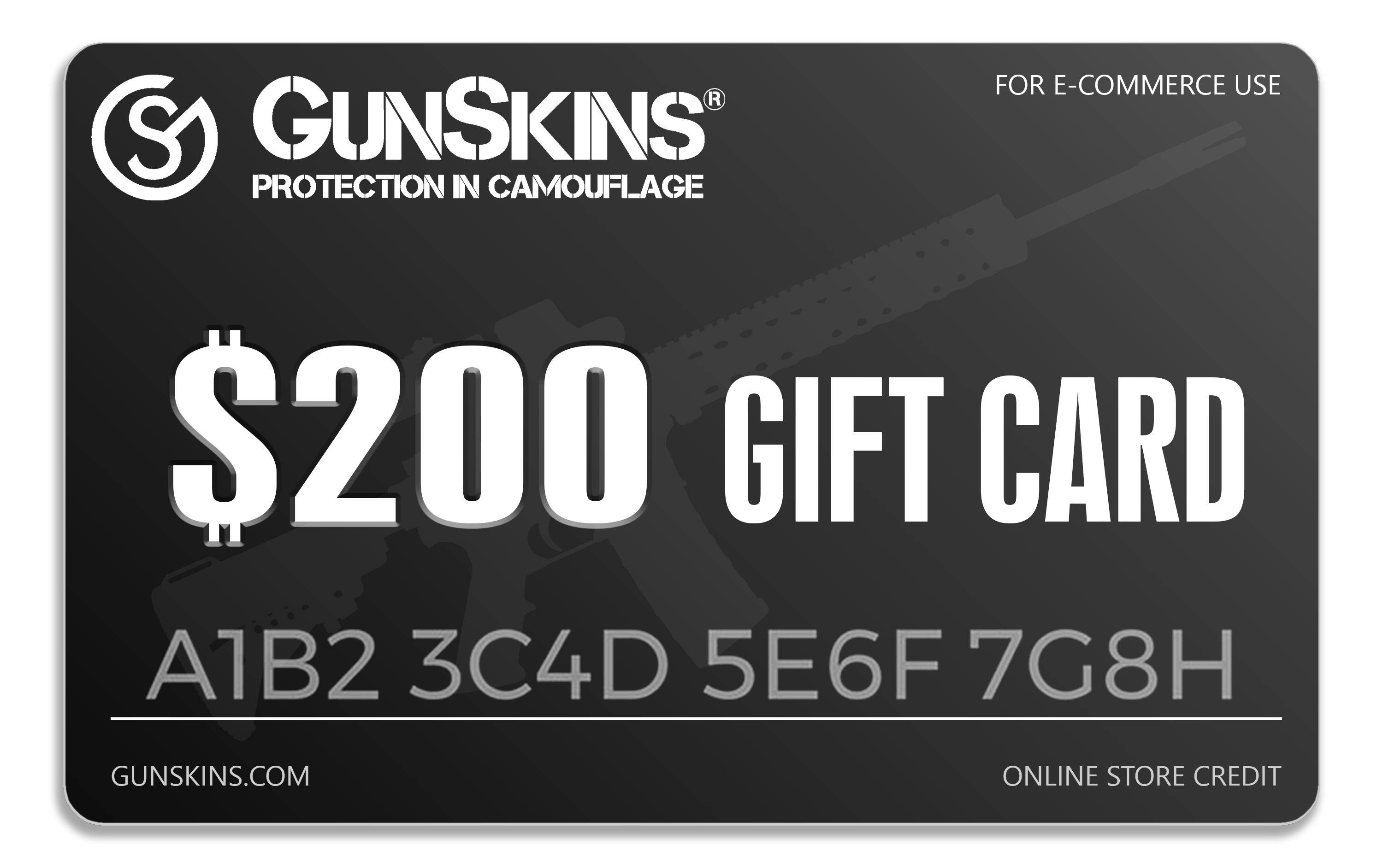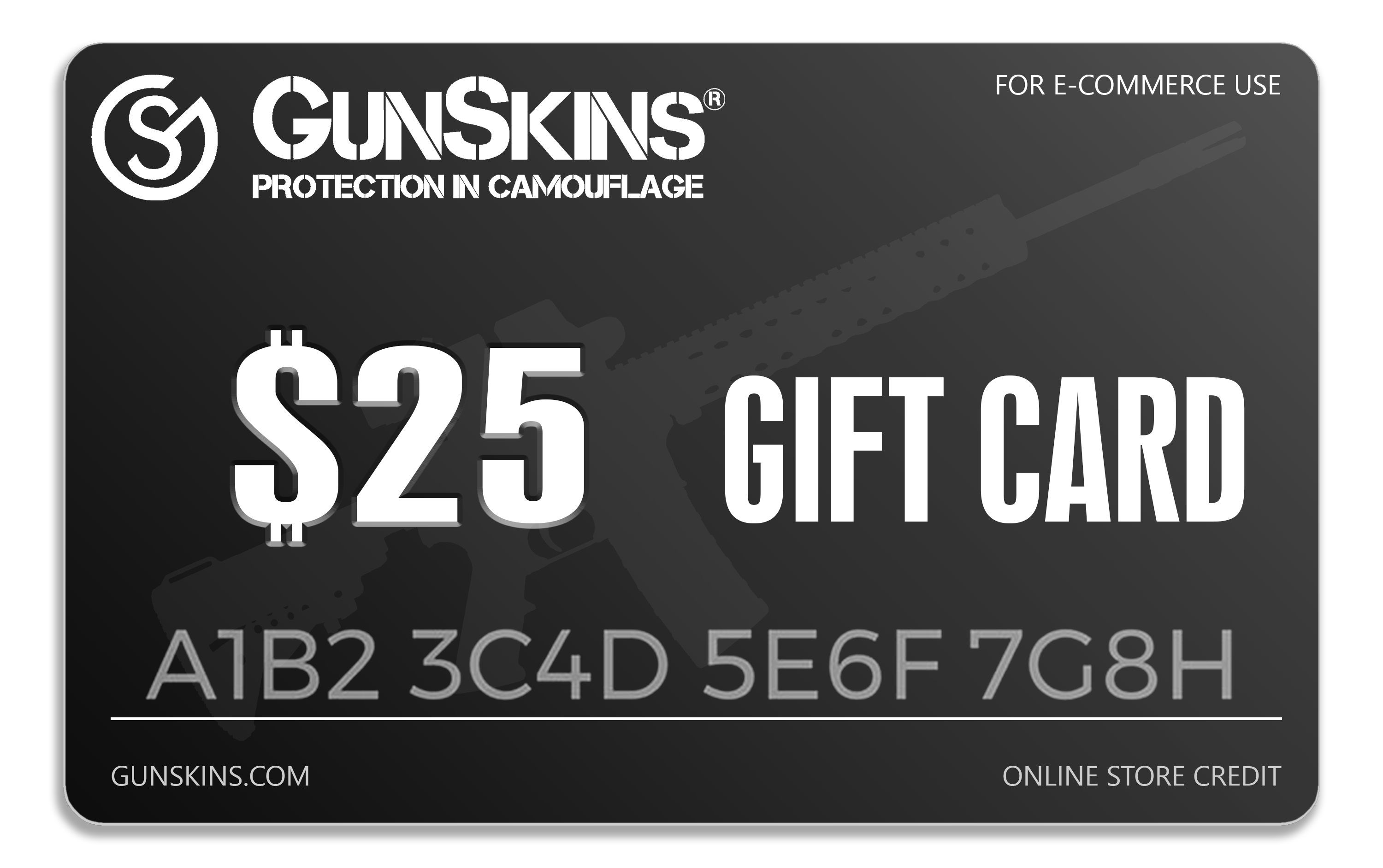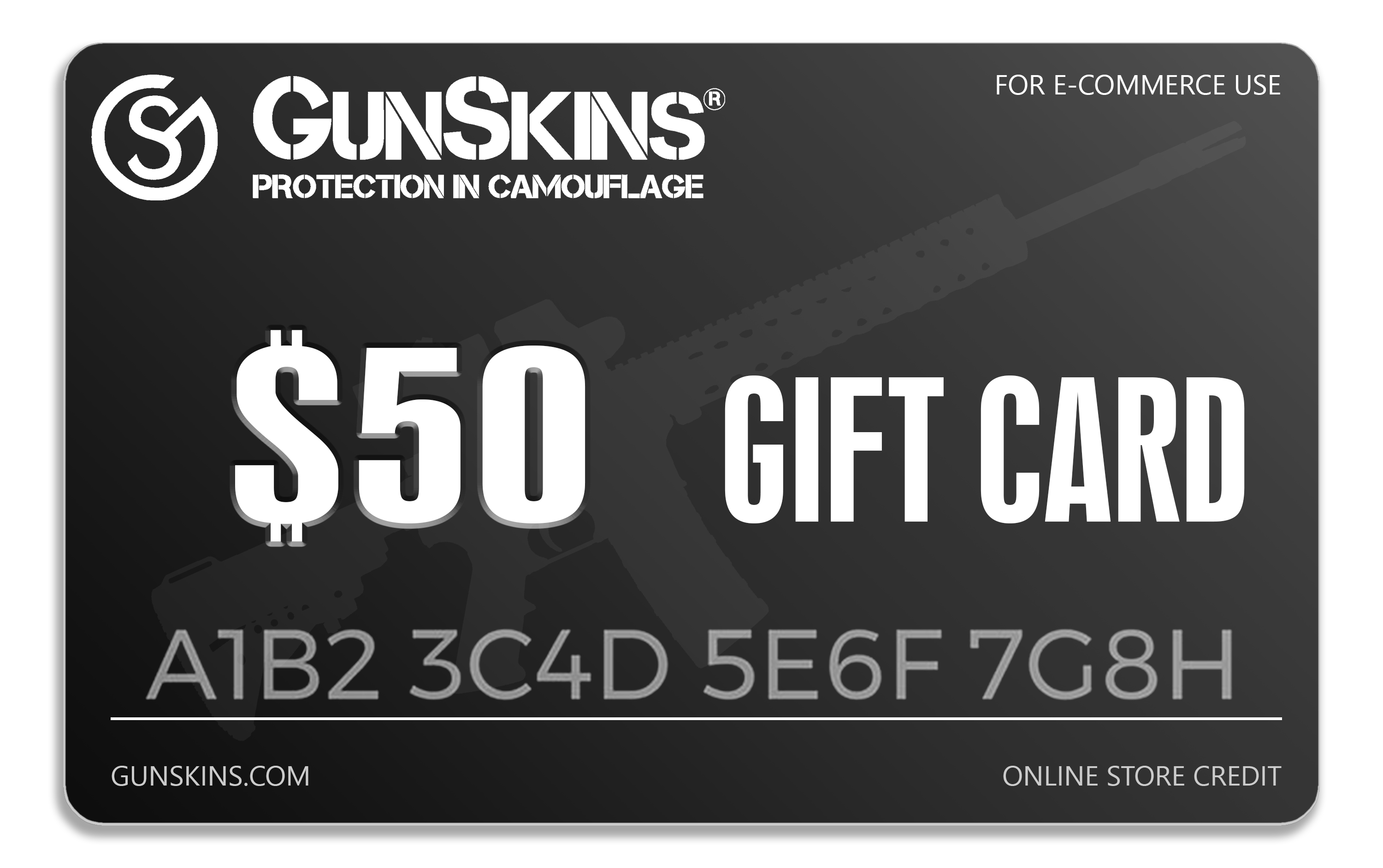 The only wrapping involved in the giving of this gift is the wrapping of vinyl on the weapon of their choosing. With more than a dozen templates and 70+ patterns, there's something for every gun! GunSkins Gift Cards are delivered by email so you can skip the trip to the post office and send it to that special someone as quickly as you can click.