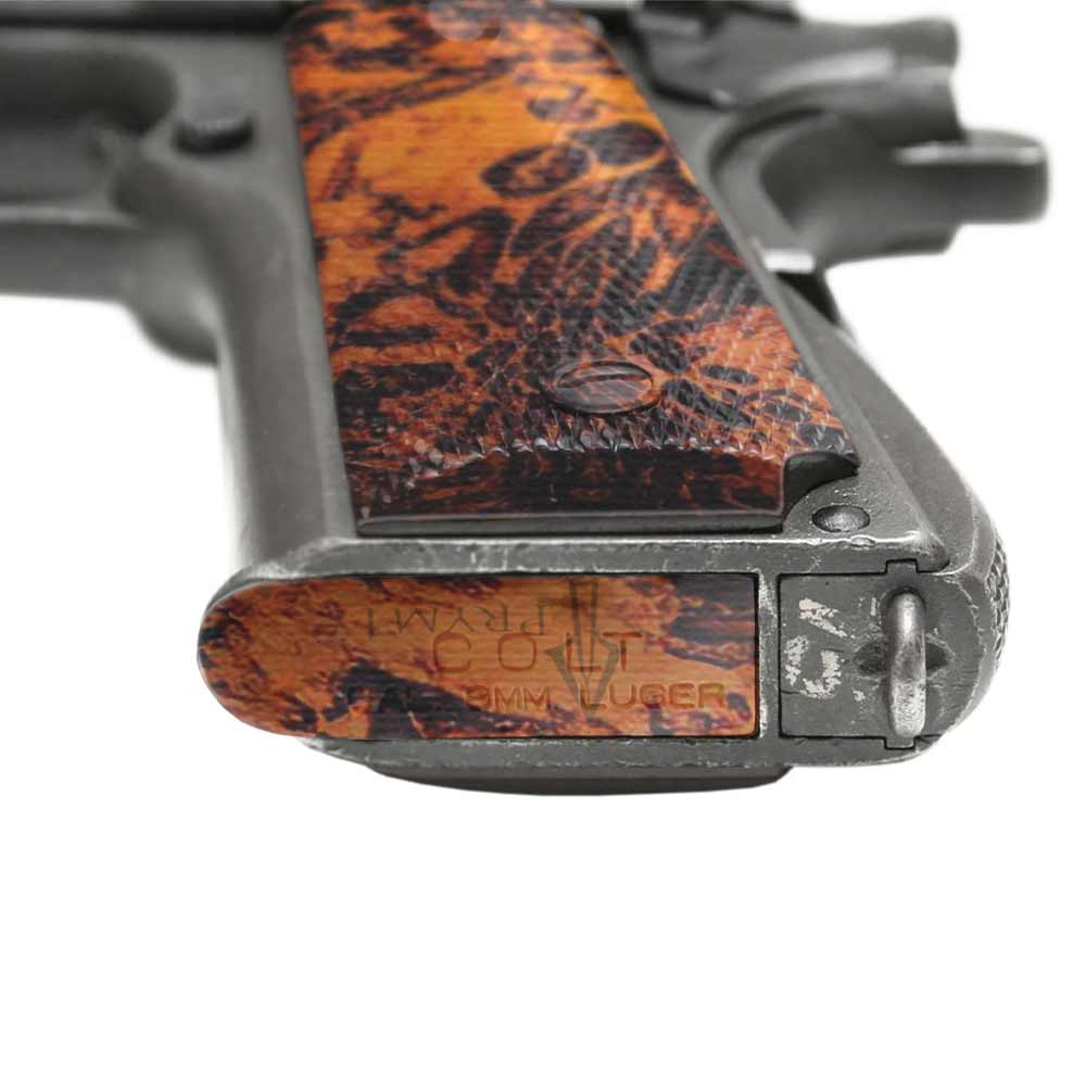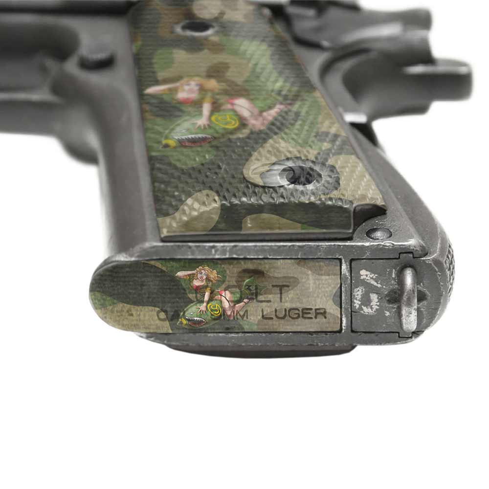 GunSkins are 100% waterproof, non-reflective, and made in the USA. The 1911 Accent Skin allows you to wrap the sides of the grip, slide up to eight inches, and six magazines. You decide just how much or how little to wrap. Sometimes less is more!